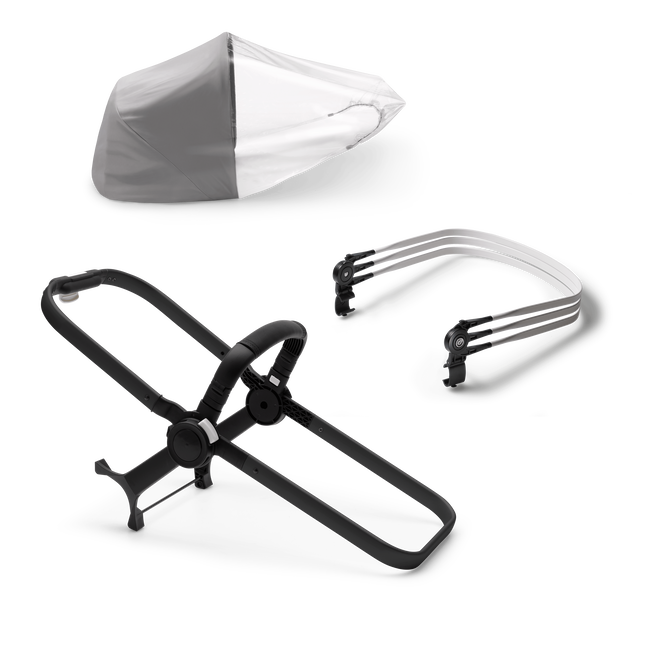 Det här förlängningssetet levereras med de grundläggande elementen för att göra din Bugaboo Donkey 3 redo för mer: en sittyta, uppsättning av solskyddsbågar, klämmor för solskyddet och handtag i läderlook, för en extra elegant touch.