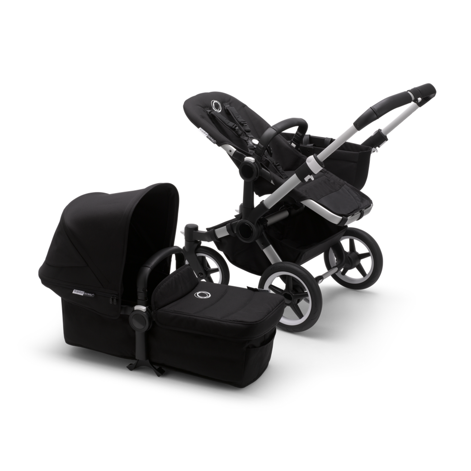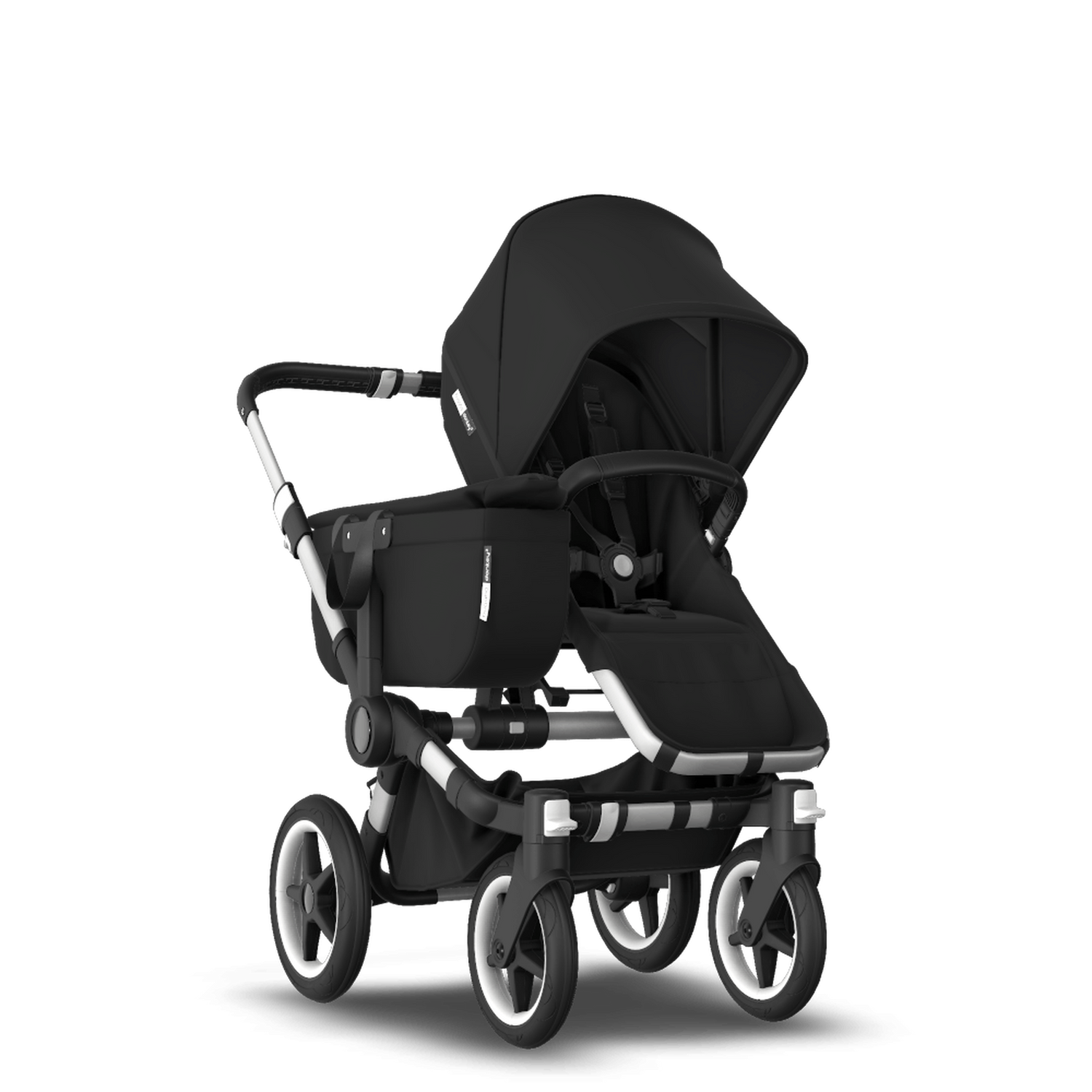 Thanks to the front swivel wheels, tight turning radius and adjustable handlebar, the Bugaboo Donkey is easy to manoeuvre with one hand. No terrain is too difficult for the large foam-filled tyres, which also make it easy to get up and down pavements. For more difficult terrain, sand or snow, put the stroller in two-wheel position and get going easily and smoothly.