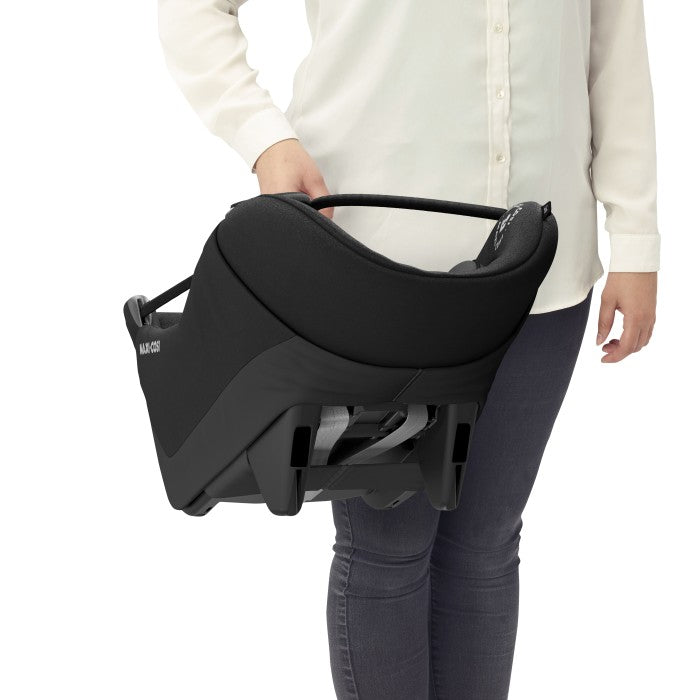 Introducing Maxi-Cosi Coral with a smart double function. The pioneering modular construction combines high security with a light soft carrier for close contact. The soft carry bag weighs only 1.7 kg and has retractable handles for extra convenience. FamilyFix3 makes mounting easy with ISOFIX or seat belt. Coral can be left in the car while you carry the baby in the light carrier bag for smooth movements. Safety is prioritized with i-Size standard and G-CELL technology. The lightweight carrier bag is ergonomic and easy to click into place in its safety shell and ISOFIX base. Coral also offers a large sun shade for the child's comfort and can be adapted to Maxi-Cosi pushchairs. The cover can be easily removed and machine washed if necessary.