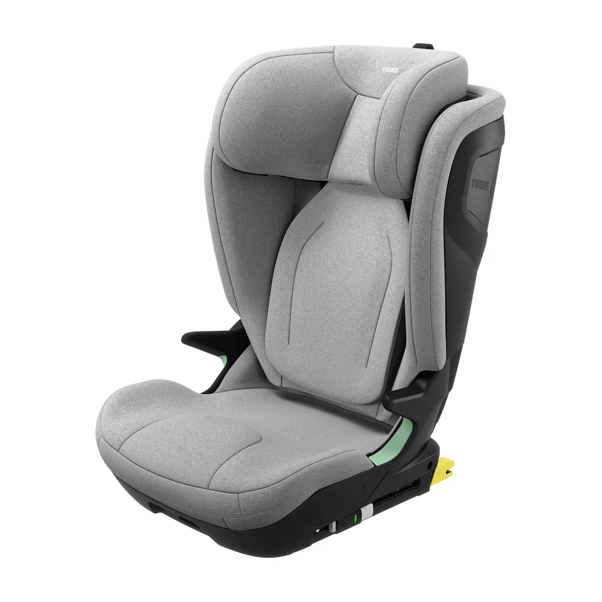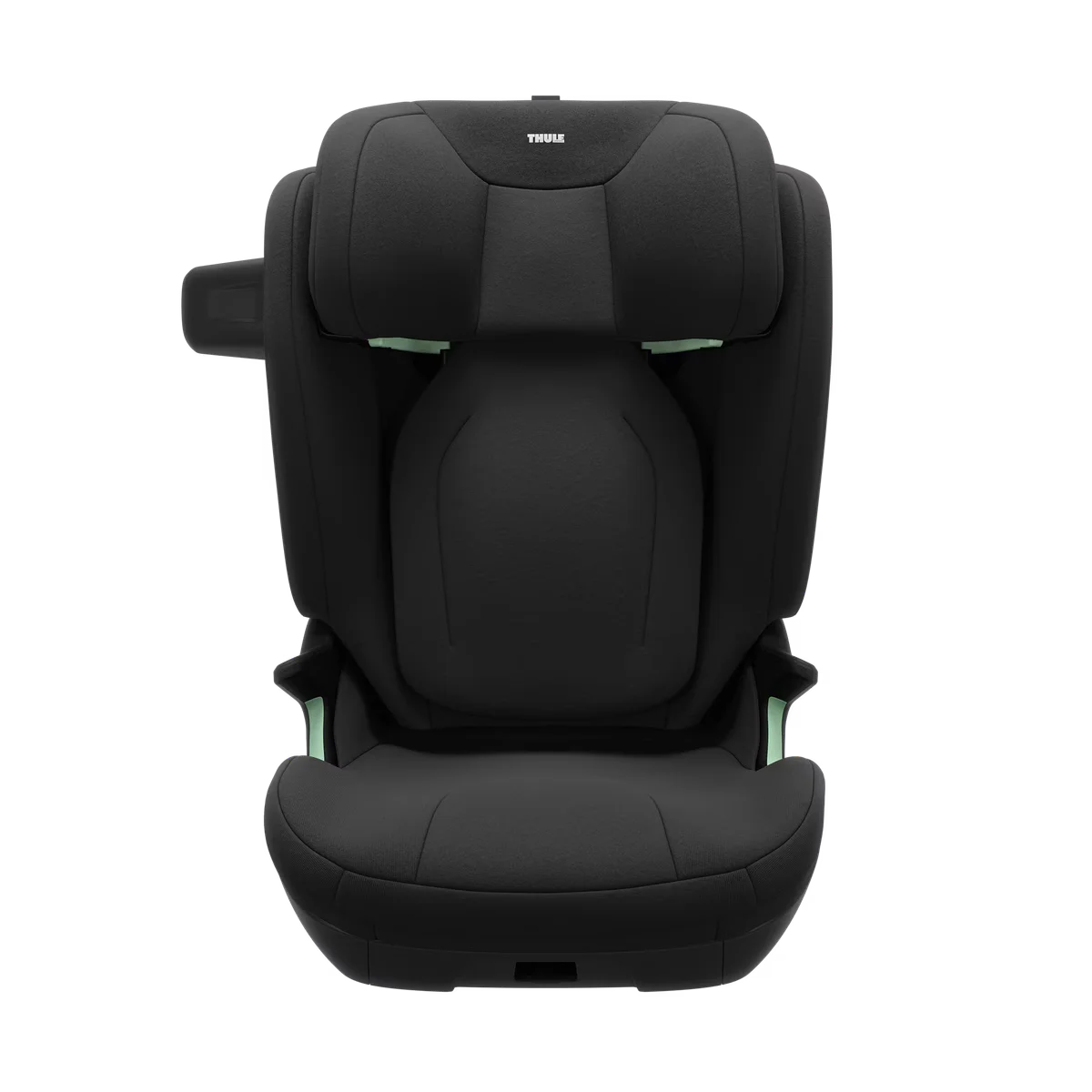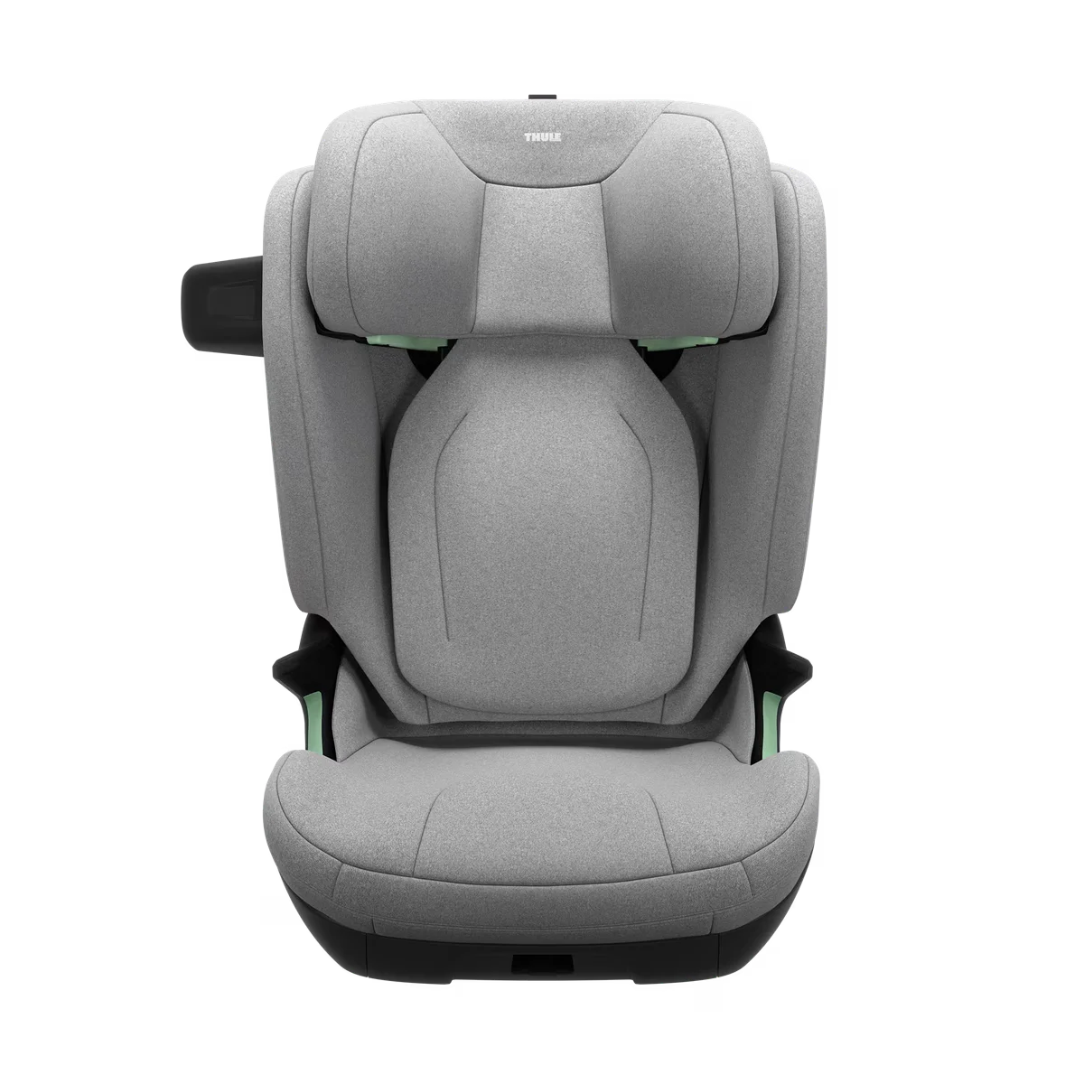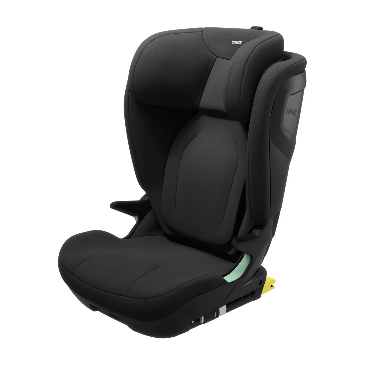 Säkerhet: Stort huvudstöd och avancerat sidokrocksskydd (Thule Side Impact Protection). De integrerade ISOFIX-krokarna ökar stabiliteten och bältesruttningssystemet säkerställer korrekt placering av bältet på barnets höfter och axel.